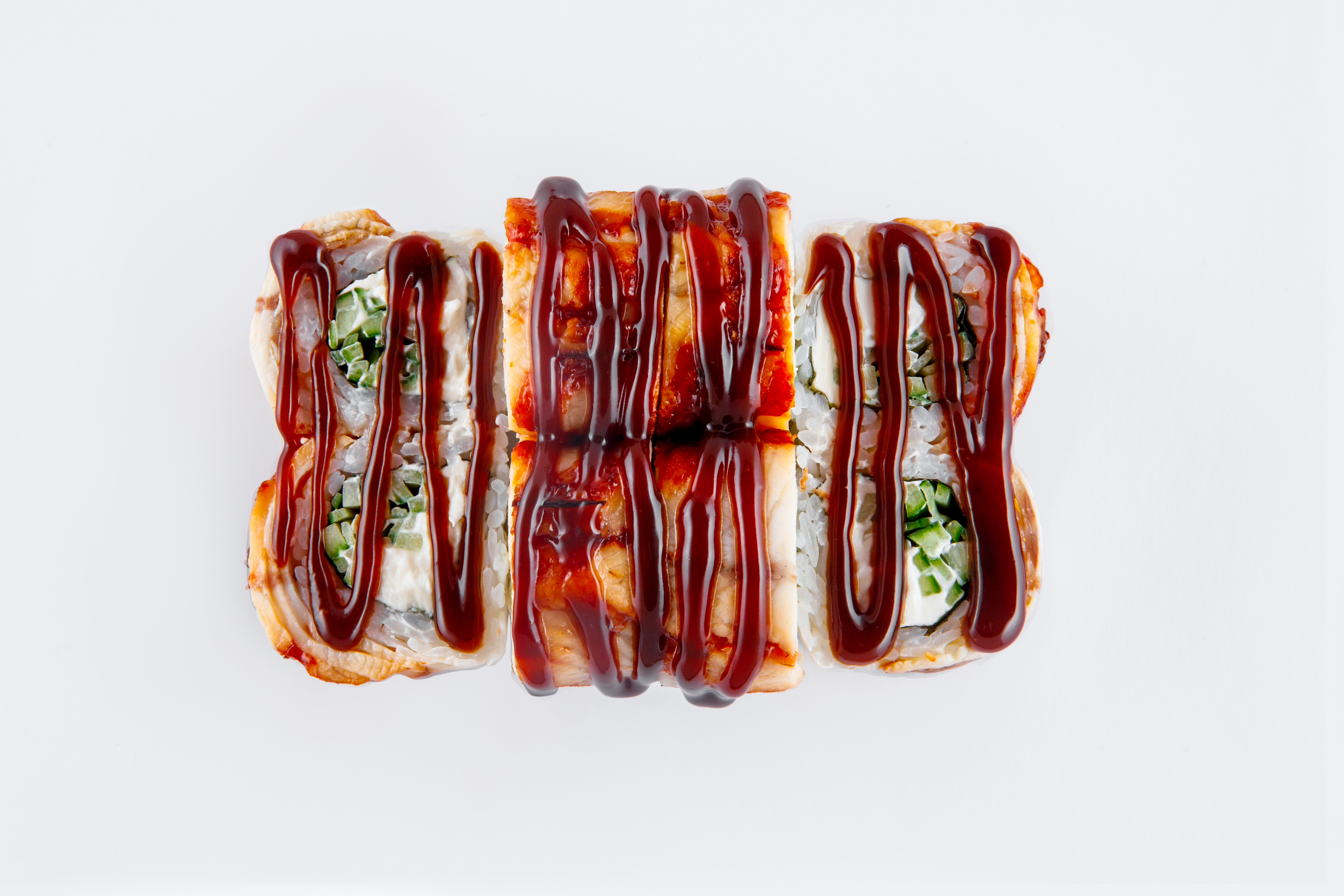 Соєвий соус (40 г.), васабі (7 г.) та імбир (15 г.) надаються до кожного ролу безкоштовно.