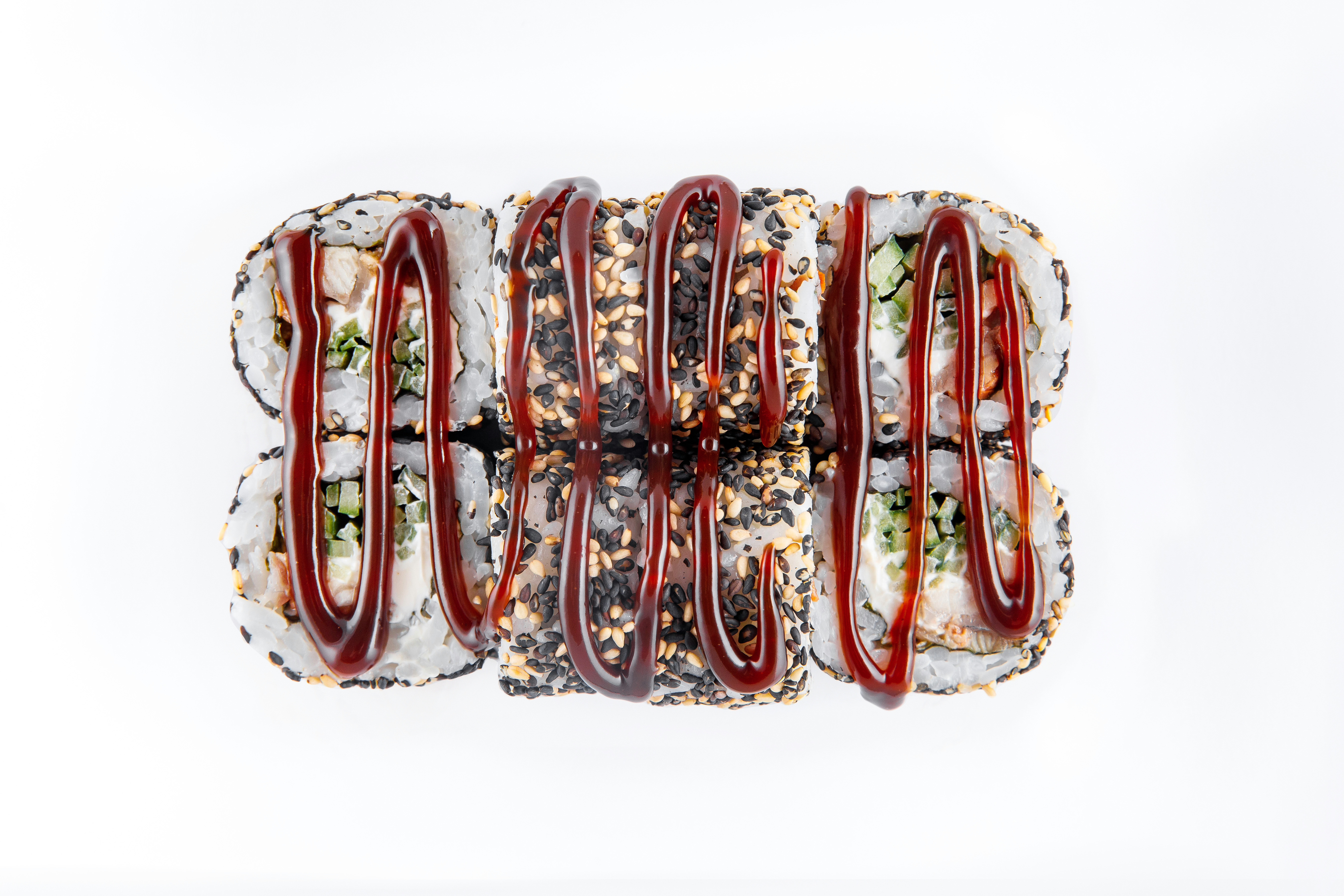 Соєвий соус (40 г.), васабі (7 г.) та імбир (15 г.) надаються до кожного ролу безкоштовно.
